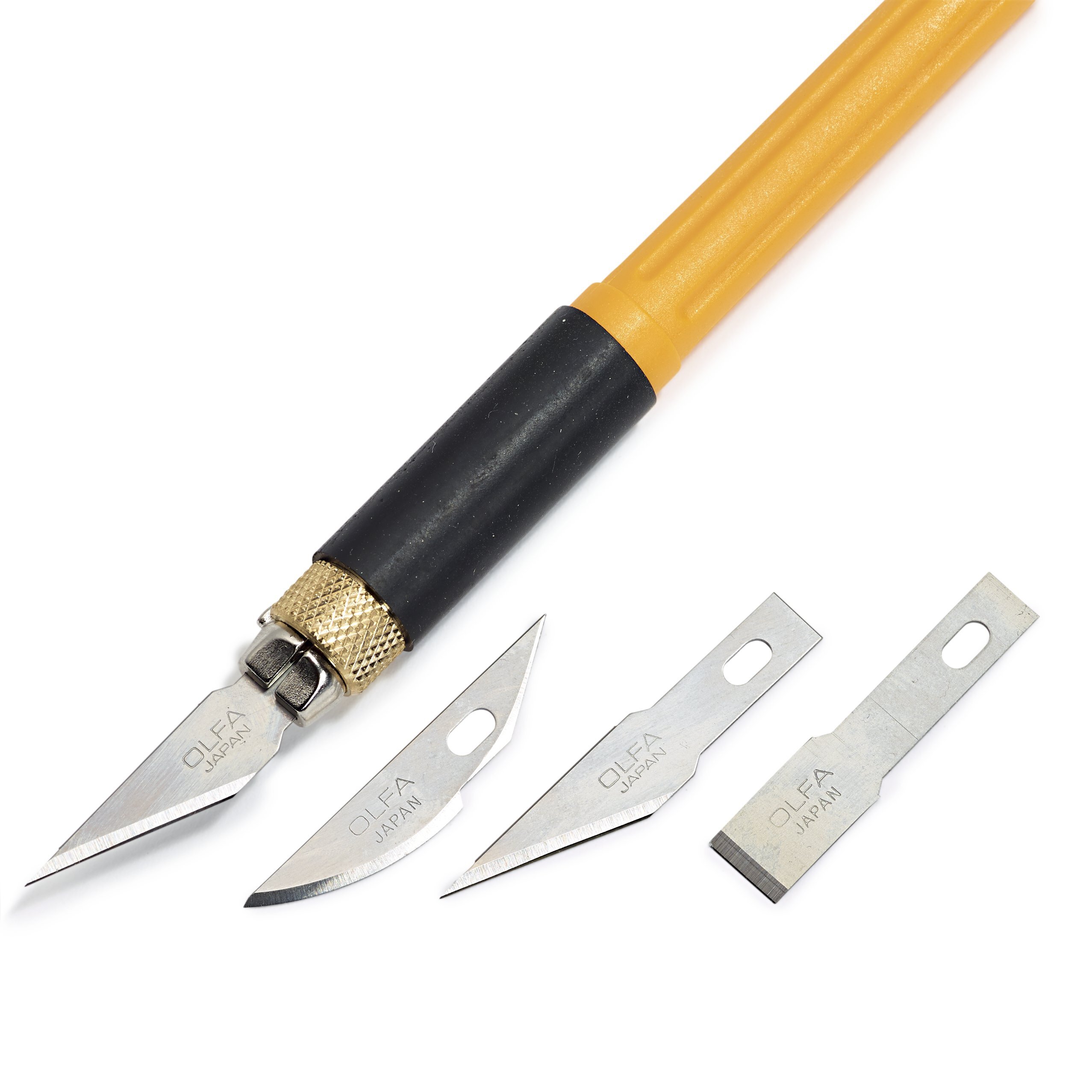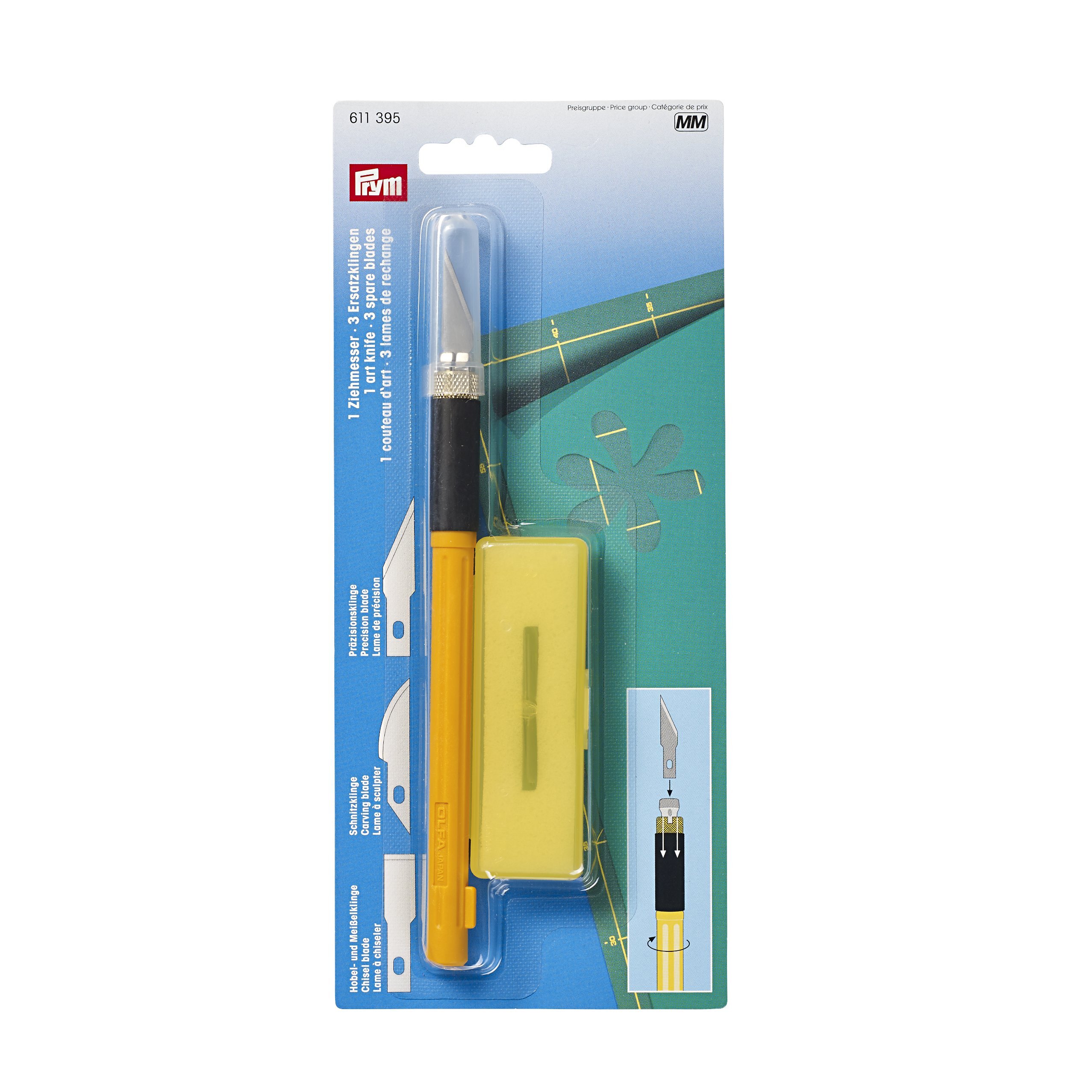 Denna hobbykniv skär enkelt i papper, läder eller plast. Följer med 4 olika blad.